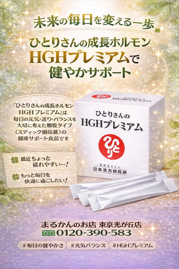 「HGHプレミアムで、心も体もふんわり若々しく🌿」