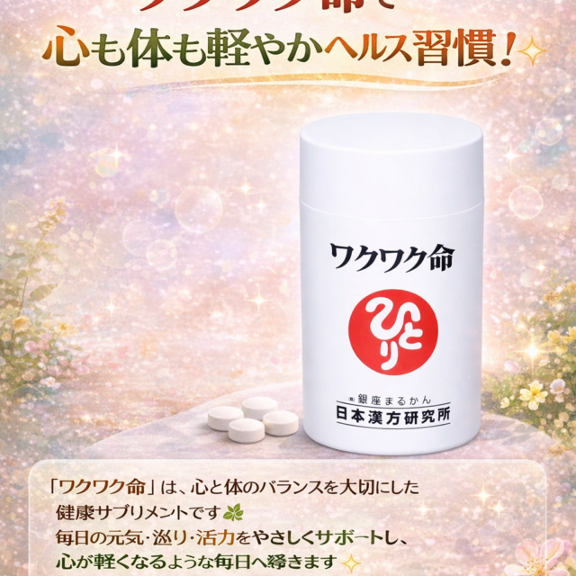 「春ウコンと腸活成分をぎゅっと詰め込んだ『ワクワク命』。体にやさしく寄り添い、毎日をぽかぽか元気に。笑顔で過ごしたい方におすすめの健康サプリです」